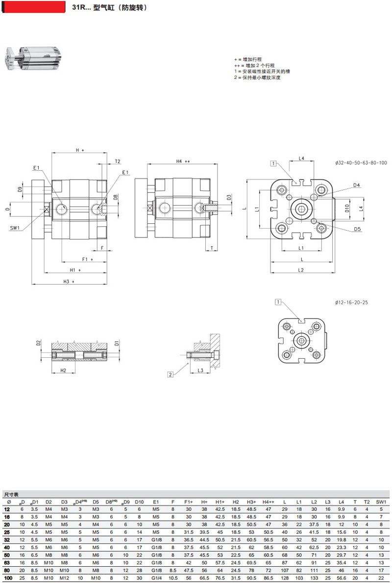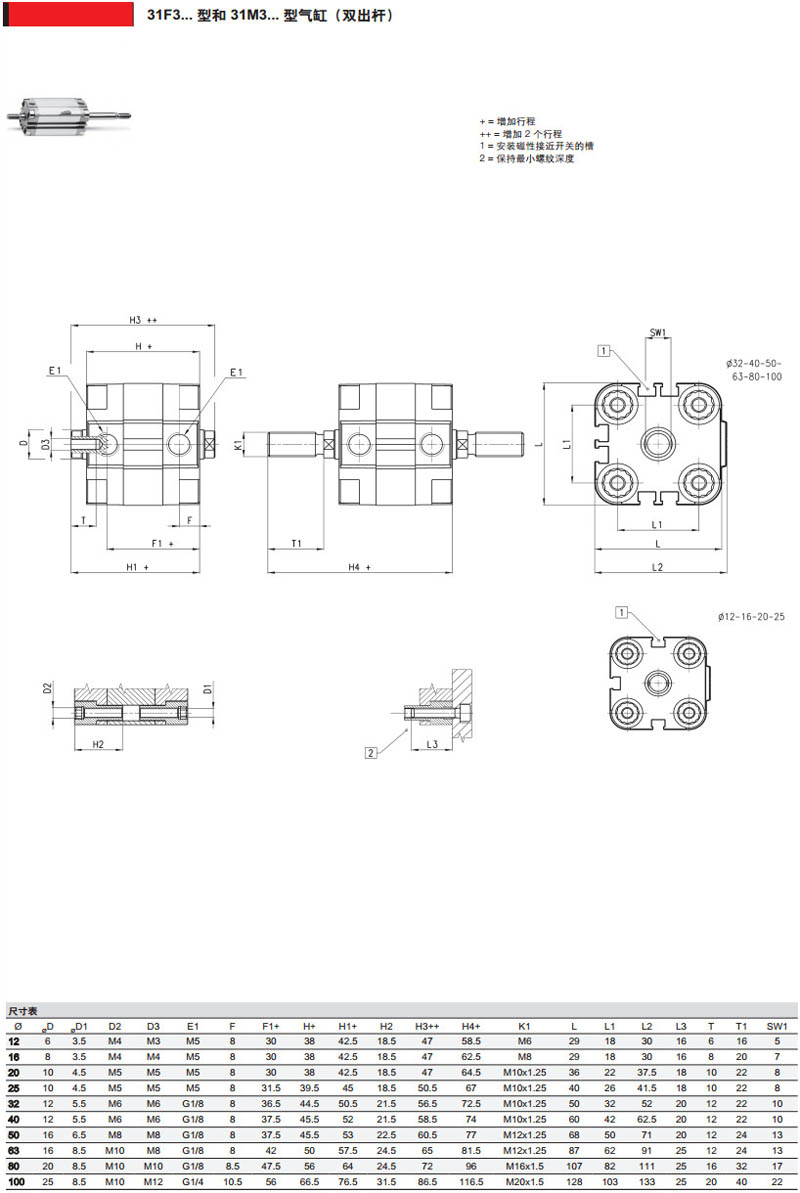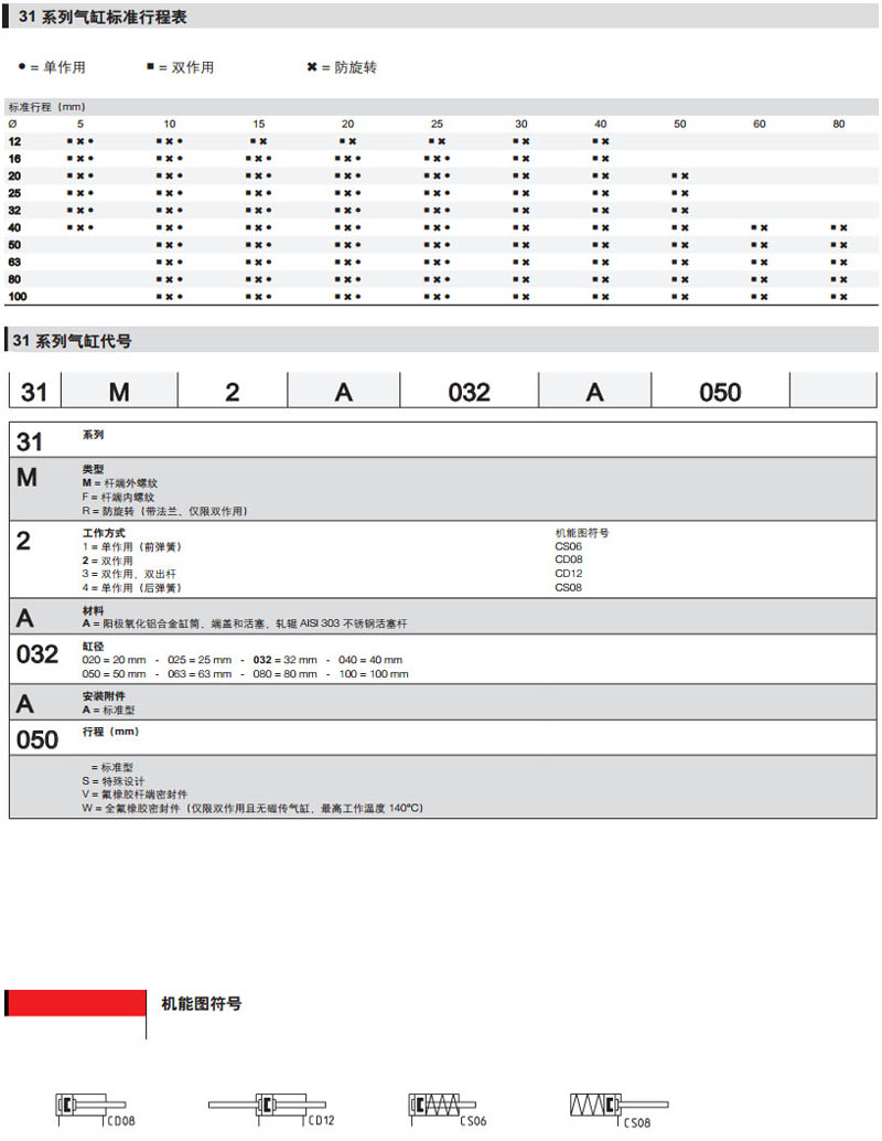 31M1A050A020,31F1A032A020,31R4A050A080,31M2A020A010,camozzi氣缸