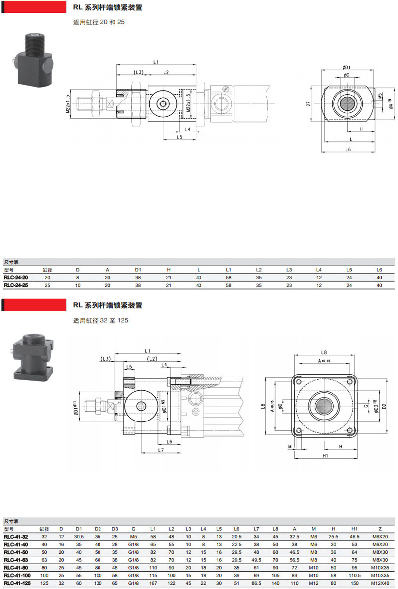RLC-24-20,RLC-41-25,RLB-24-32,RLB-41-40,RLC-24-50,RLC-41-63,camozzi桿鎖緊裝置
