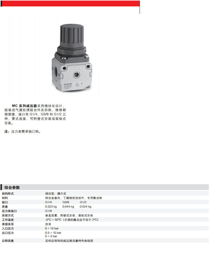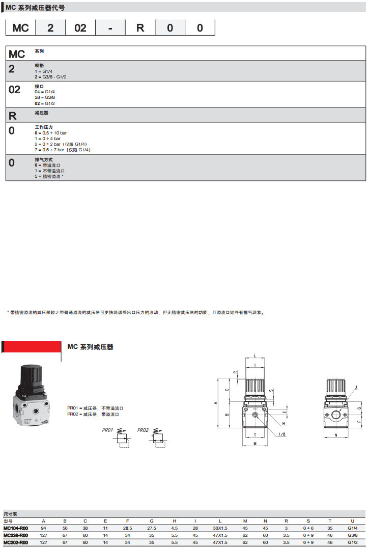 MC104-R00,MC138-R21,MC204-R25,MC238-R70,MC102-R10,MC202-R71,camozzi減壓器