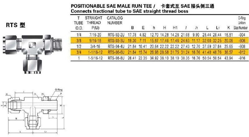 RTS-02-2U,RTS-03-3U,RTS-04-4U,RTS-06-6U,RTS-08-8U,接頭側三通接頭