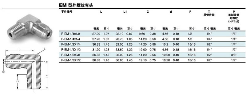 P-EM-1/4*1/8,P-EM-1/4*1/4,P-EM-1/2*1/4,P-EM-1/4*1/2,P-EM-1/2*3/8,P-EM-1/2*1/2,外螺紋彎頭