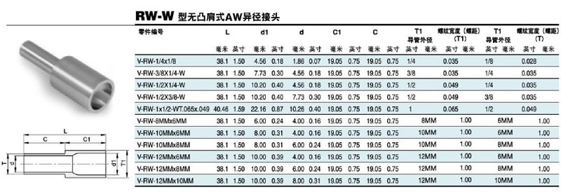 V-RW-1/2*1/4-W,V-RW-1/2*3/8-W,V-RW-1*1/2-W,V-RW-10MM*8MM,