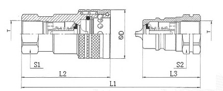 | 昌林液壓 | 國際標準 | L1 | L2 | L3 | ØD | S1 | S2 | T | 母接頭編號 | 公接頭編號 |