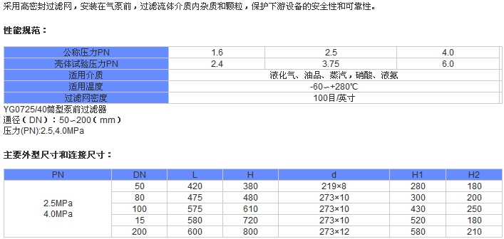 YG07-25P-DN50,YG07-25P-DN80,YG07-40P-DN100,泵前過(guò)濾器