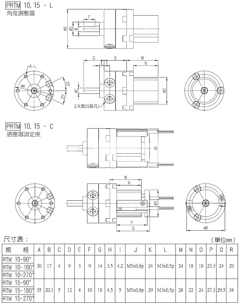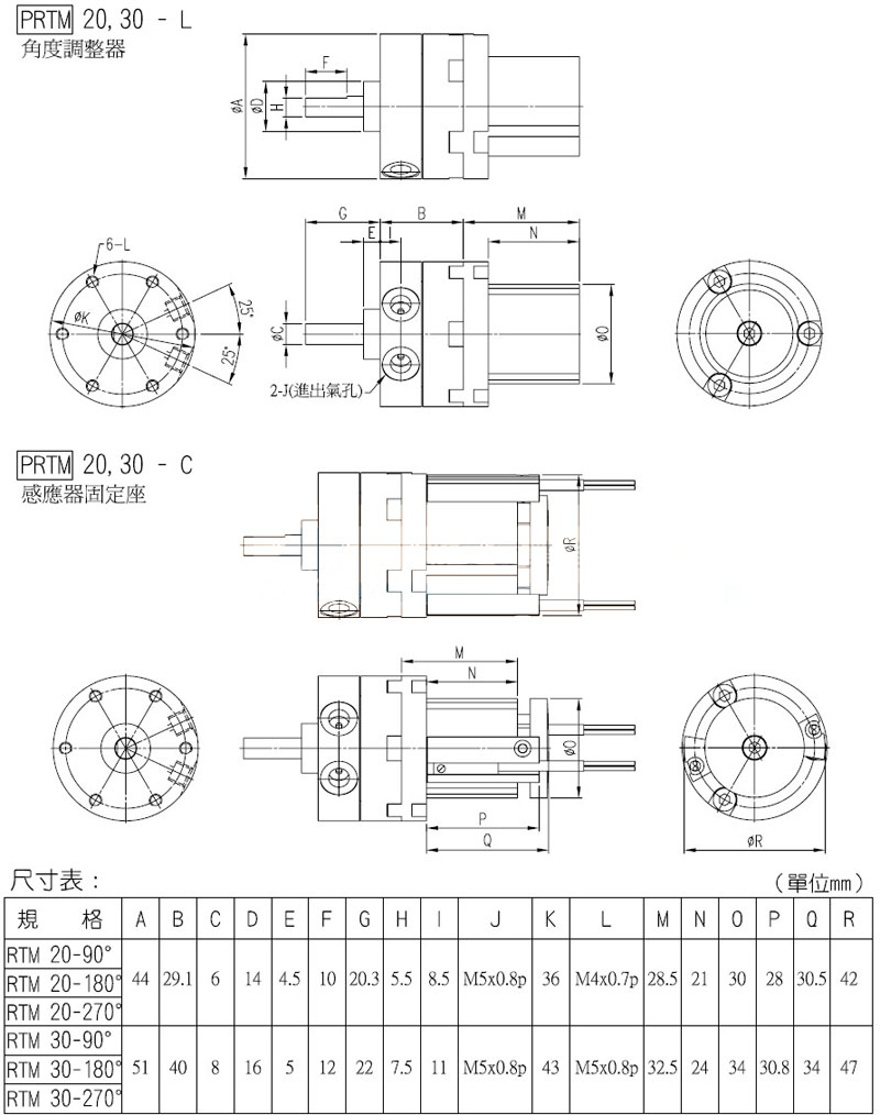 PRTM-10-90,PRTM-15-180,PRTM-20-270,PRTM-30-90,panix迷你型回轉氣缸