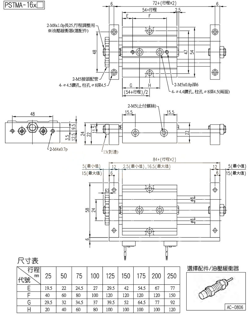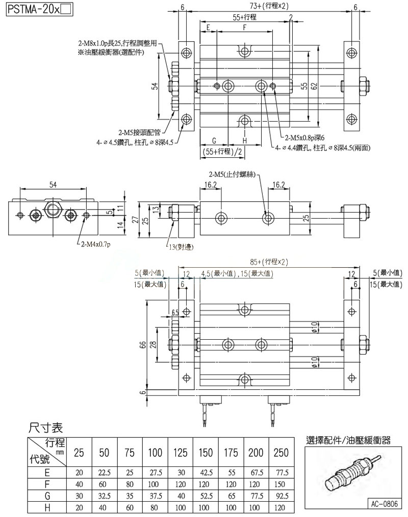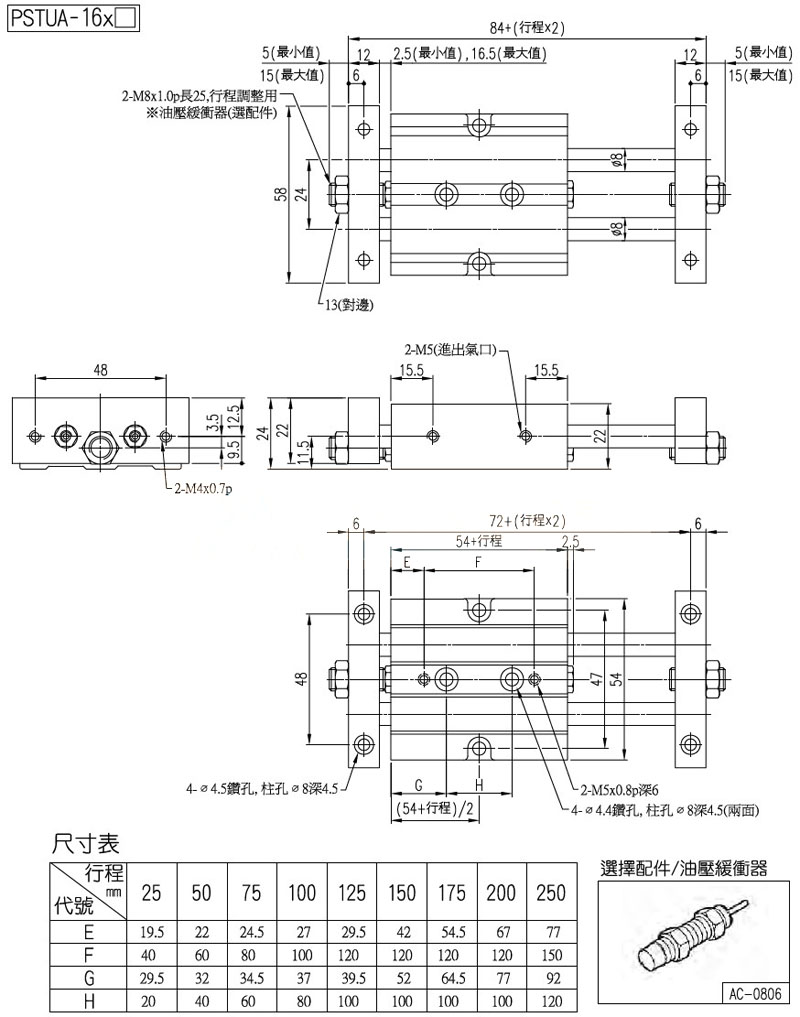PSTUA-16,PSTUA-25,PSTUA-32,PSTMA-16,PSTMA-20,PSTMA-32,panix滑臺氣缸
