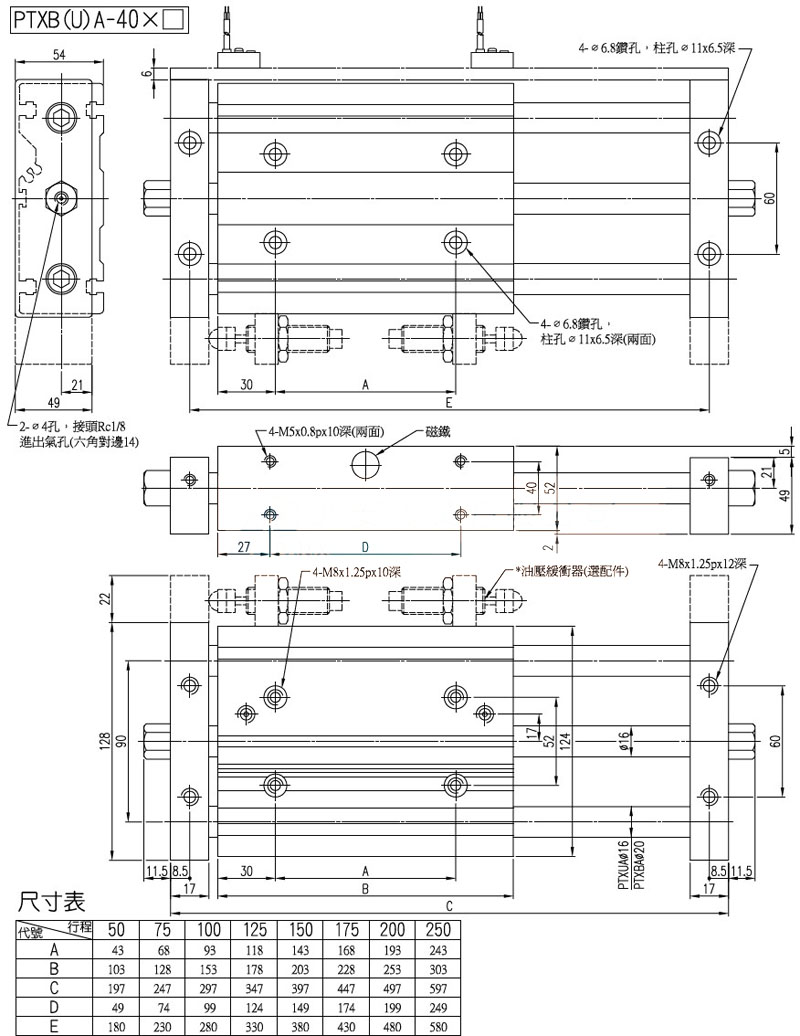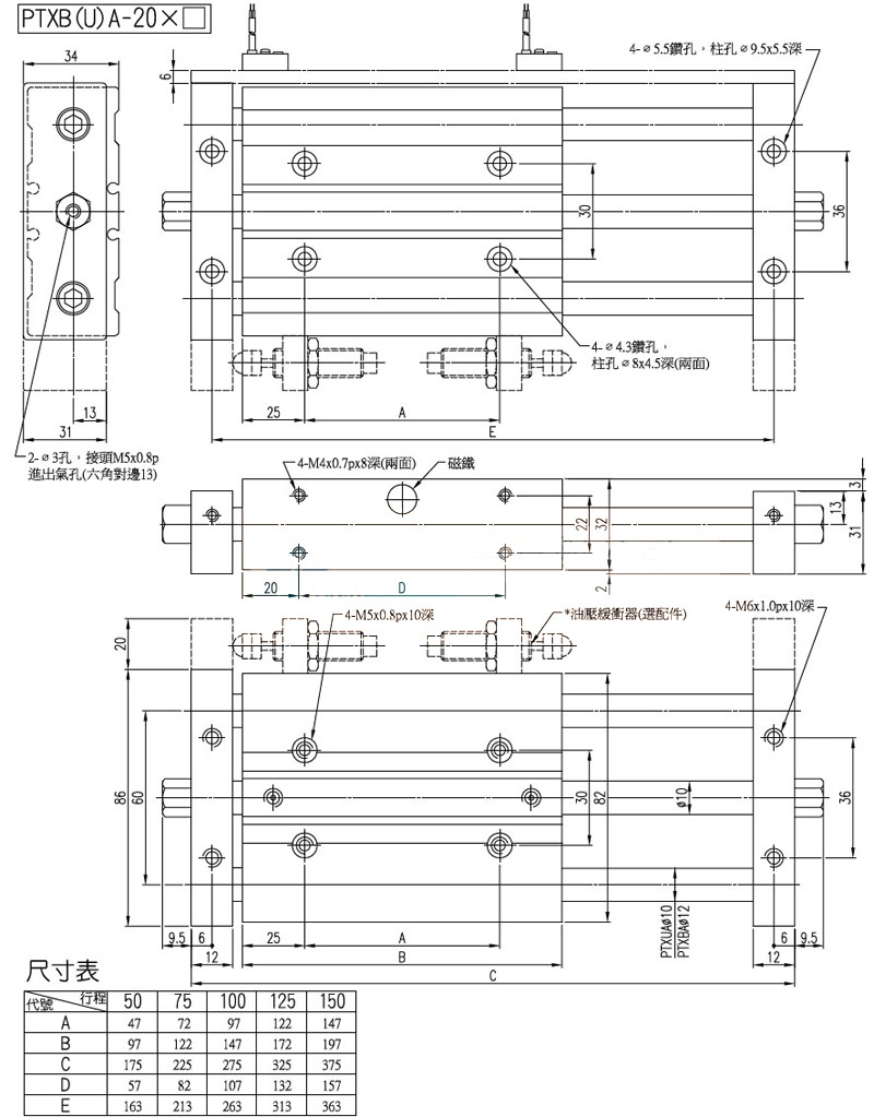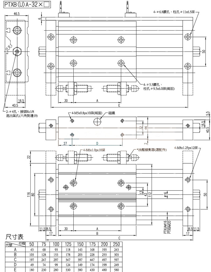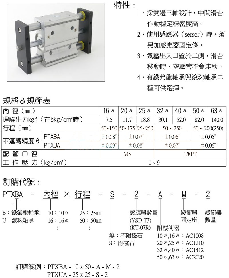 PTXBA-16,PTXBA-20,PTXBA-32,PTXUA-20,PTXUA-32,panix導桿滑臺氣缸
