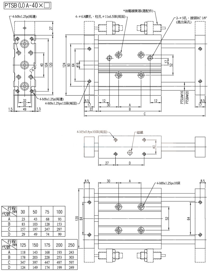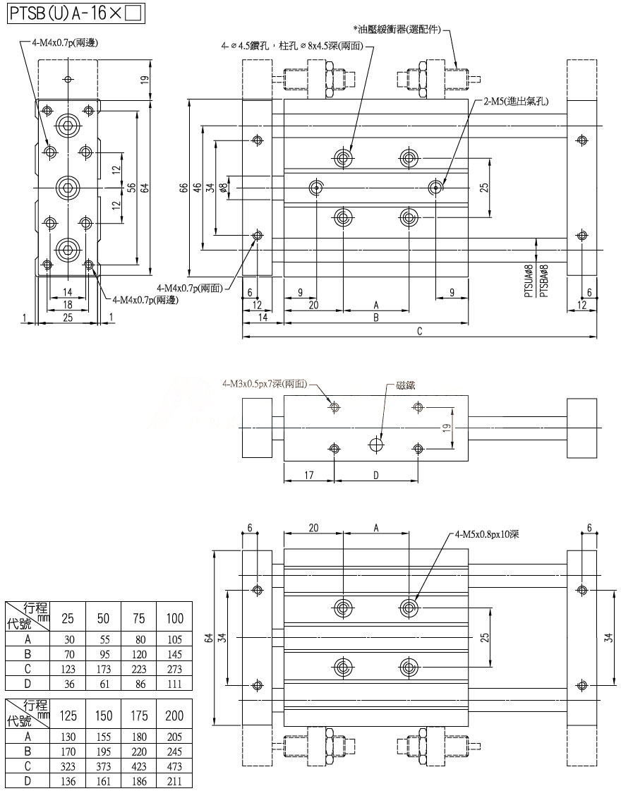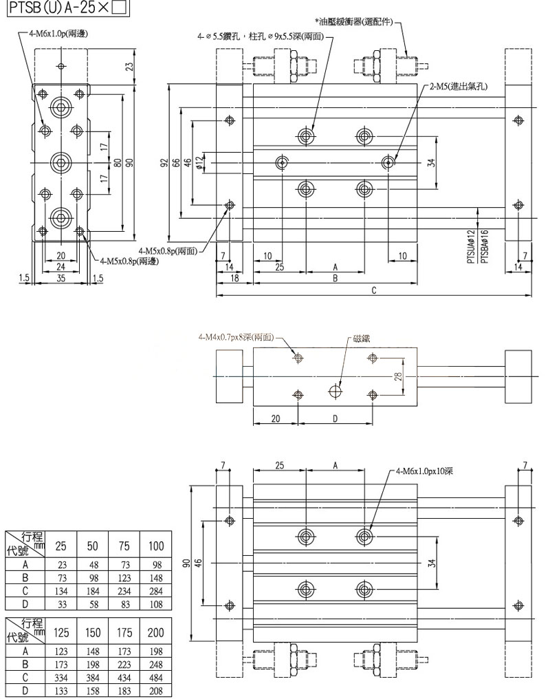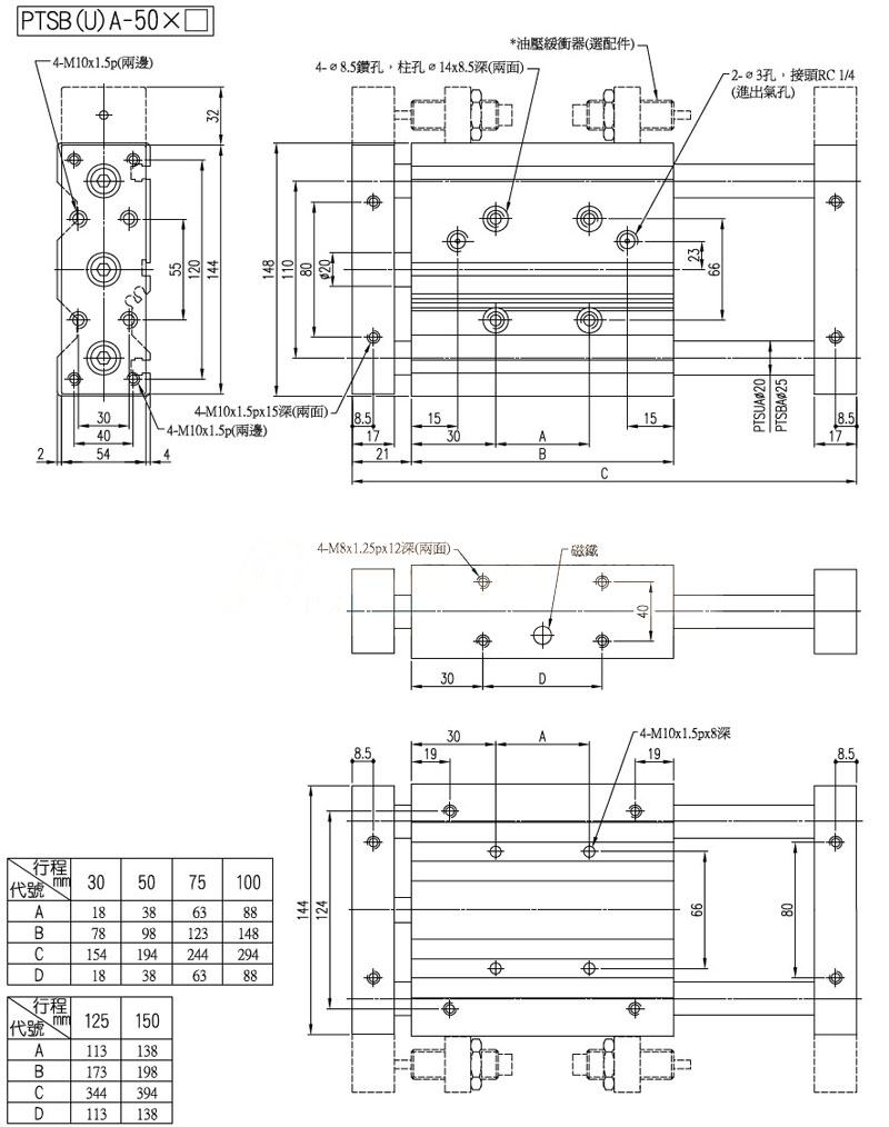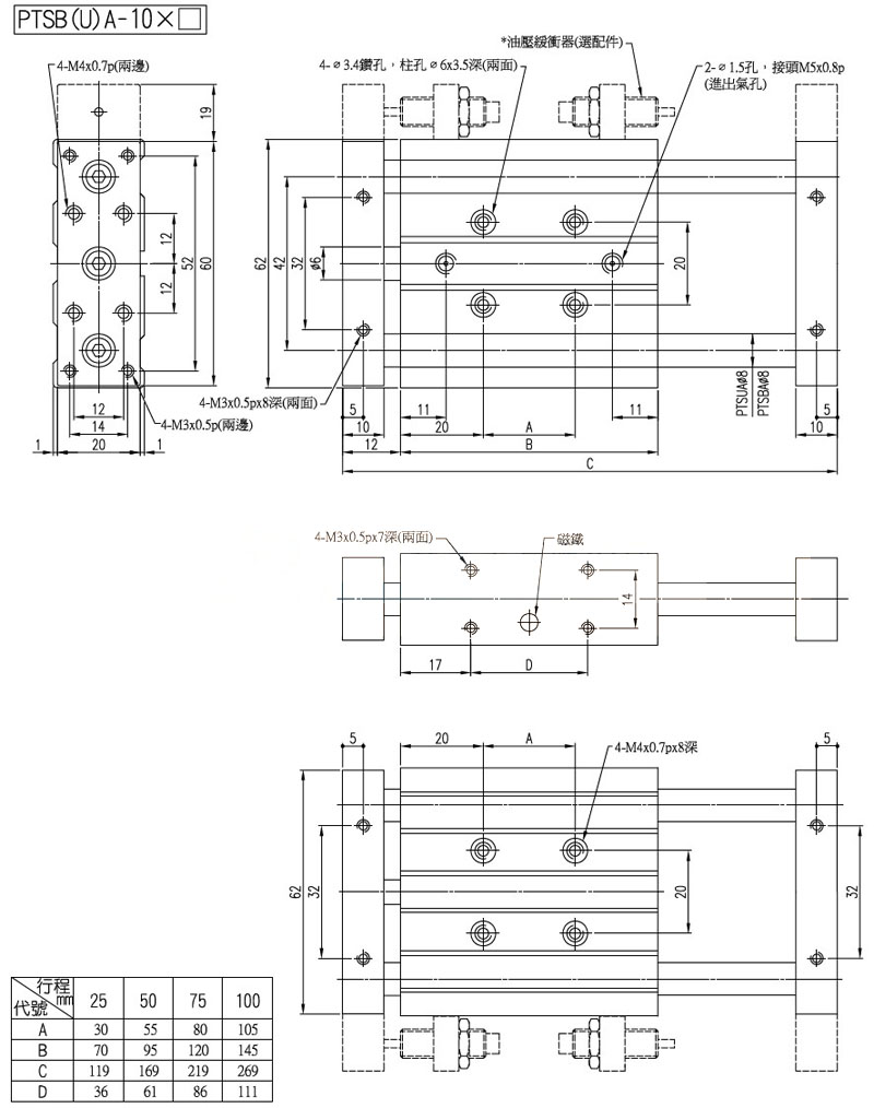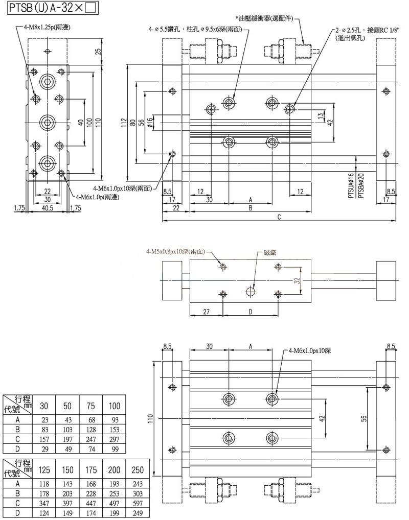 PTSBA-10,PTSBA-20,PTSBA-32,PTSUA-10,PTSUA-20,PTSUA-32,panix導桿滑塊氣缸