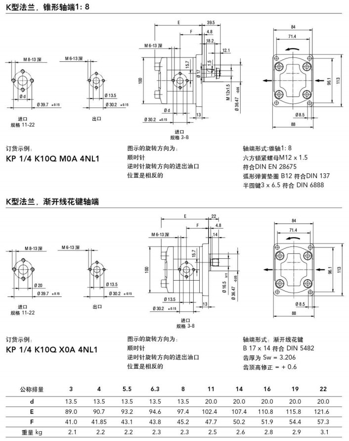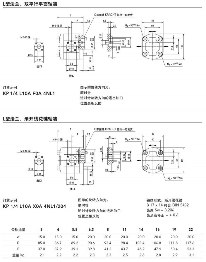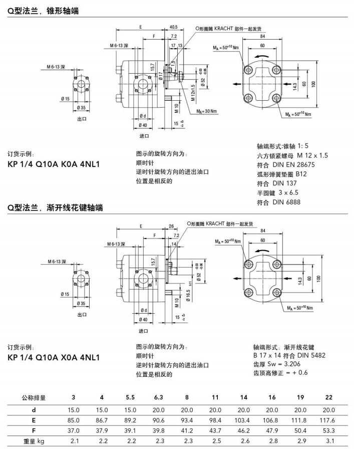 KP1/3,KP1/4,KP1/5.5,KP1/6.3,KP1/8,KP1/11,KP1/14,KP1/16,KP1/19,KP1/22,kracht高壓齒輪泵