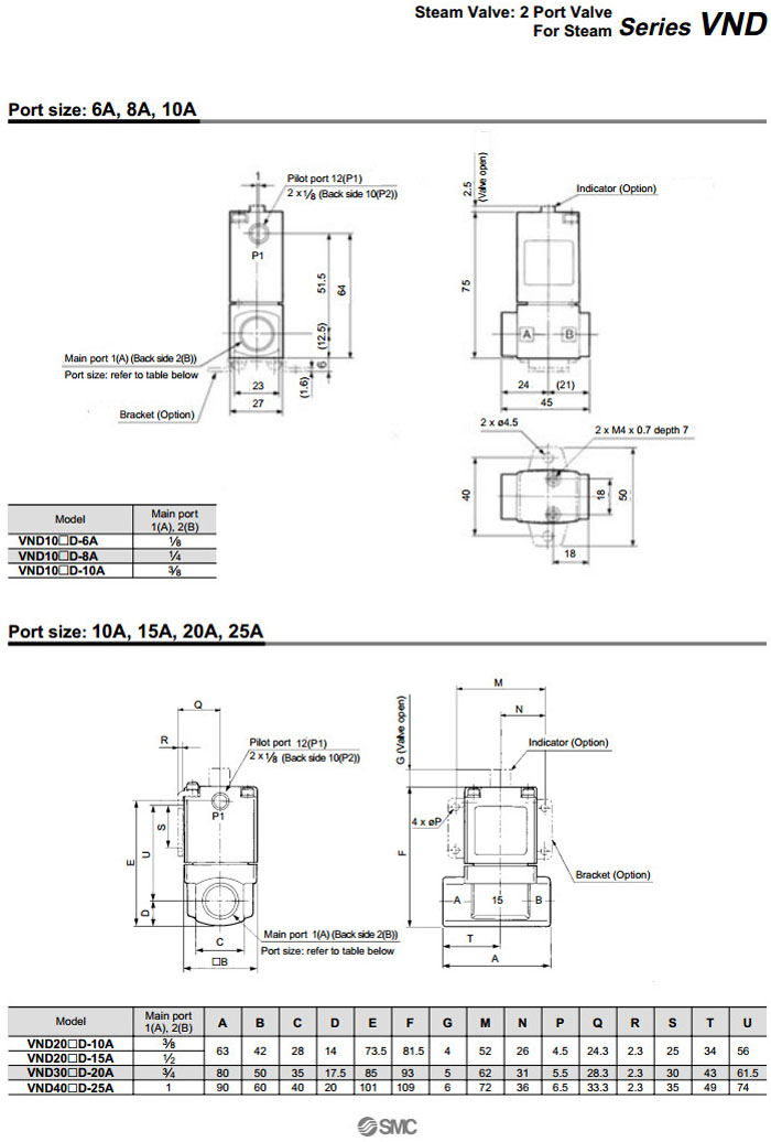 VND102D-6A,VND104D-6A,VND200D-10A,VND300D-20A,VND400D-25A,VND500D-32A,VND600D-40A,VND700D-50A,SMC蒸汽用2通閥