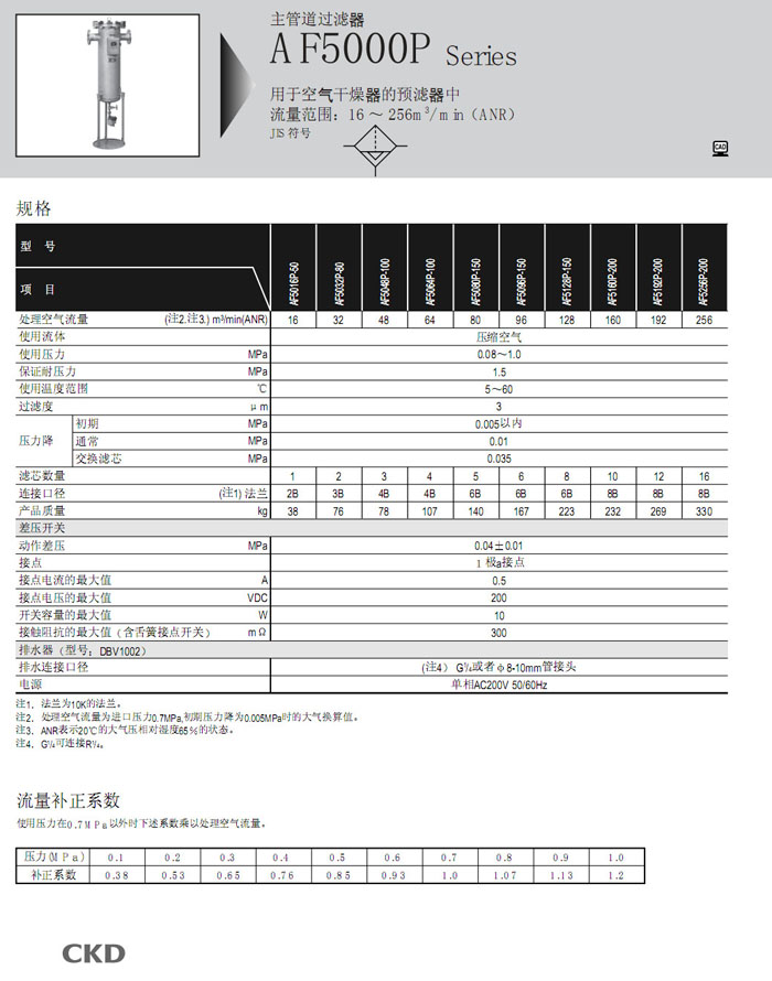 AF5016P,AF5032P,AF5048P,AF5064P,AF5080P,AF5096P,AF5128P,AF5160P,AF5192P,AF5256P,CKD主管道過(guò)濾器