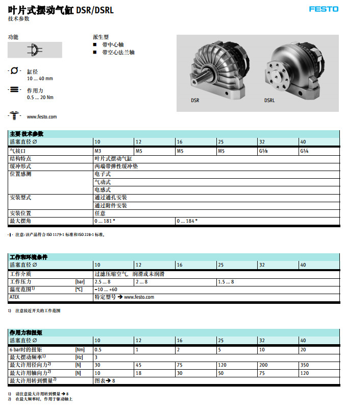 DSRL-10,DSRL-12,DSRL-16,DSR-25,DSR-32,DSR-40,festo葉片式擺動(dòng)氣缸