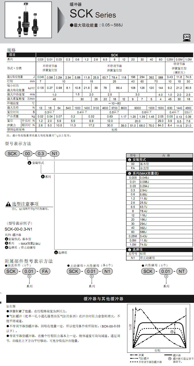 SCK-00-0.005,SCK-00-0.01,SCK-00-0.03,SCK-00-0.3,SCK-00-0.6,SCK-00-1.2,SCK-00-2.6,SCK-00-6.5,CKD緩沖器
