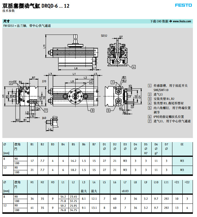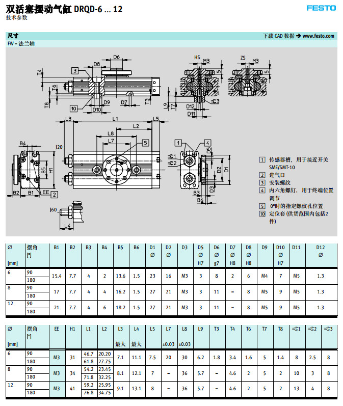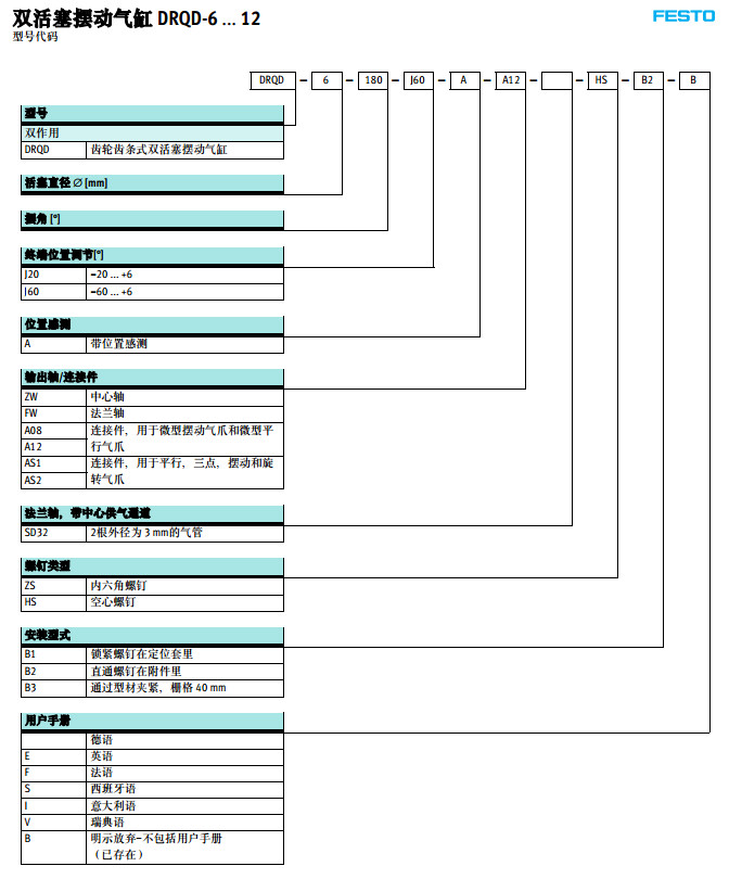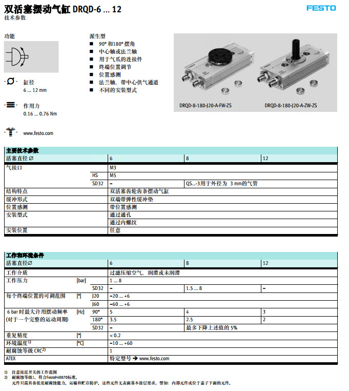 DRQD-6-180-J20,DRQD-8-180-J60,DRQD-12-180-J20,DRQD-6-180-J60,festo擺動(dòng)氣缸