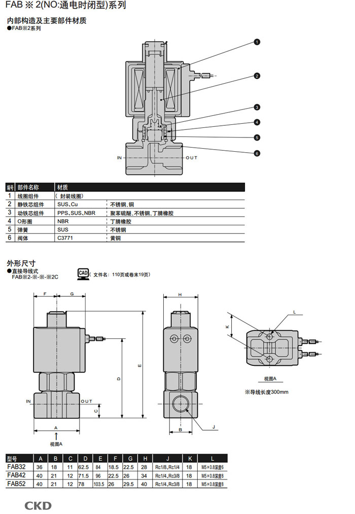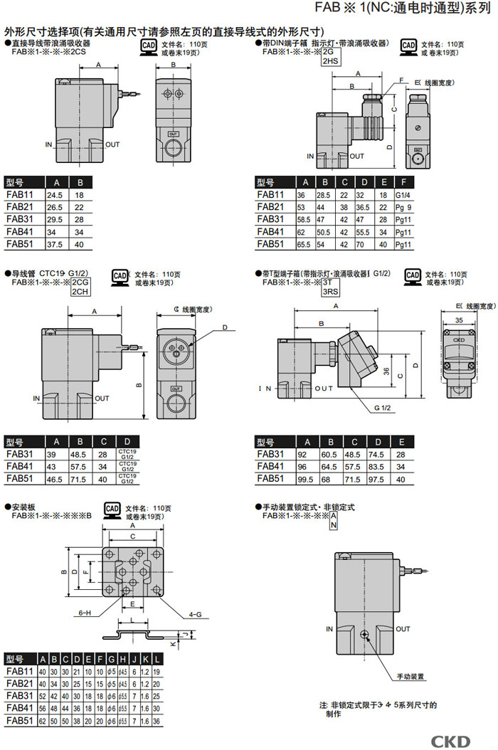 FAB11,FAB21,FAB31,FAB41,FAB51,FAB32,FAB42,FAB52,FAB11-M5-Z-12C,FAB52-10-7-02C,CKD直動(dòng)式2通電磁閥