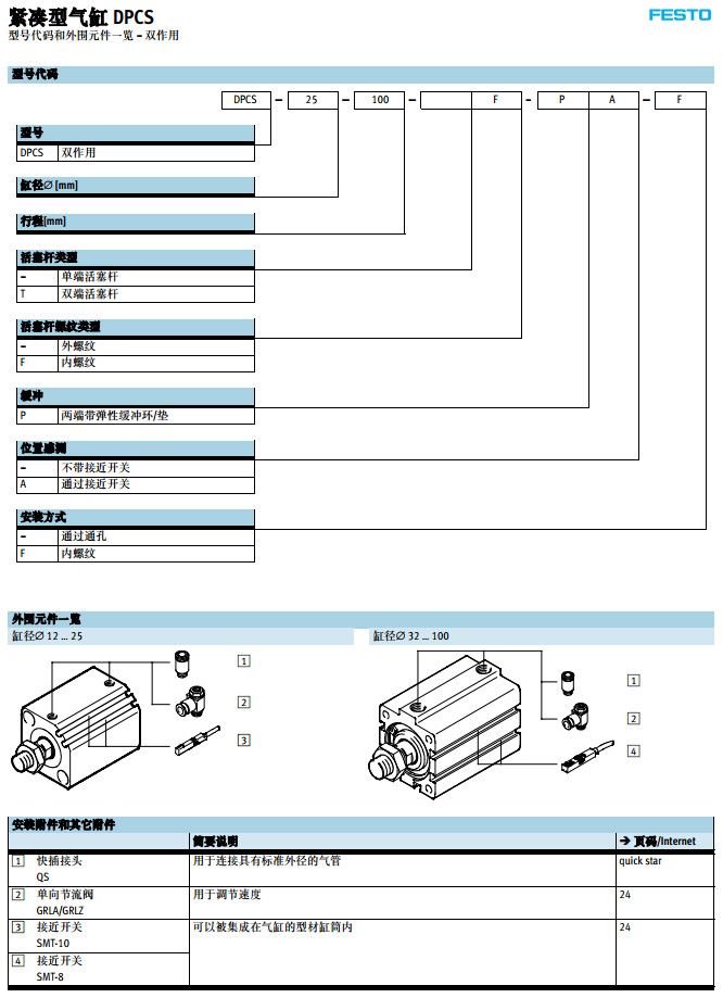 DPCS-12,DPCS-16,DPCS-20,DPCS-25,DPCS-32,DPCS-40,festo緊湊型氣缸