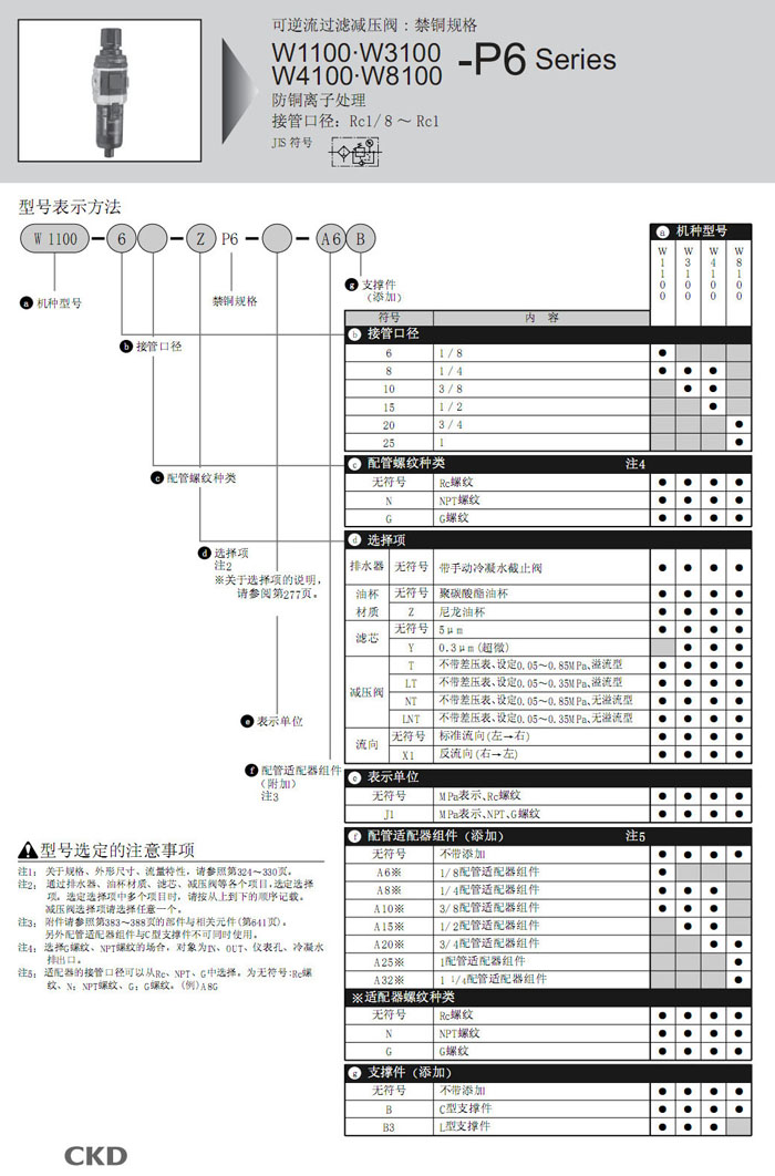 W1100-6,W1100-8,W3100-8,W3100-10,W4100-8,W4100-10,W4100-15,W8100-20,W8100-25,CKD過(guò)濾減壓閥