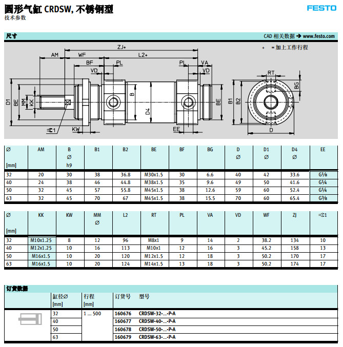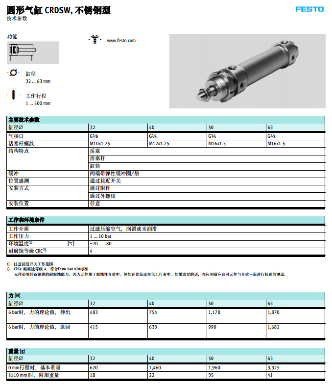 CRDSW-32-80-P-A,CRDSW-40-80-P-A,CRDSW-50-80-P-A,CRDSW-63-80-P-A,festo圓形氣缸