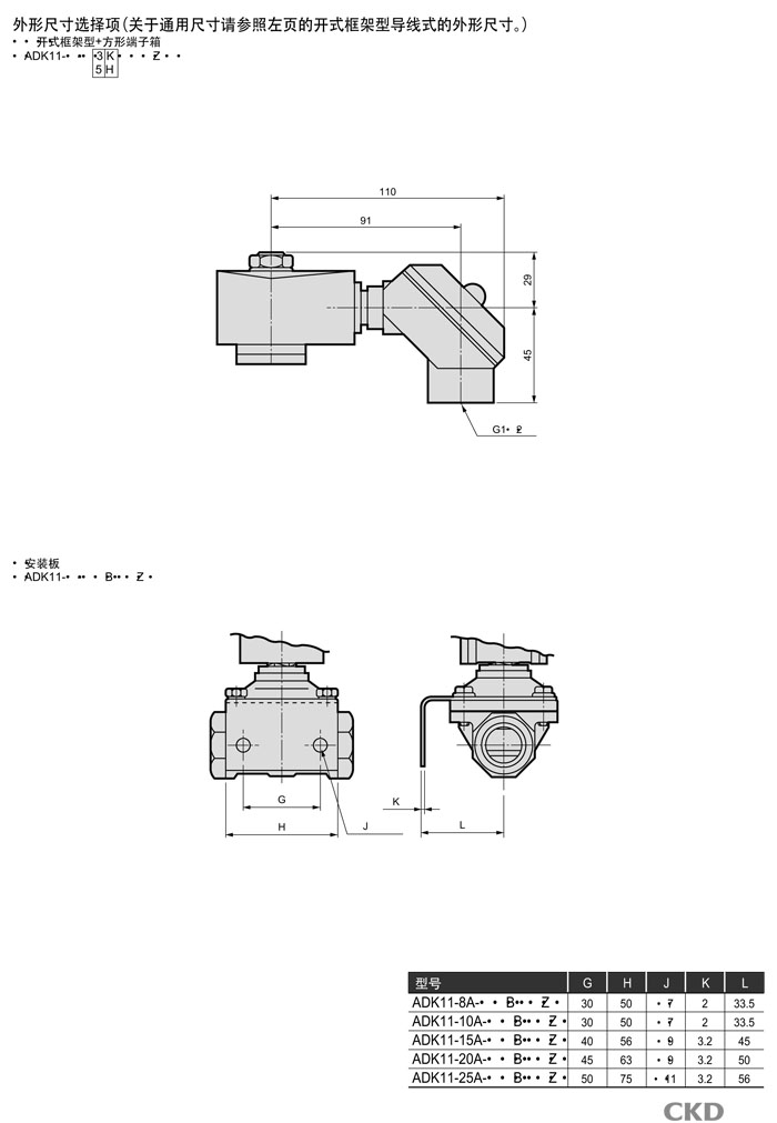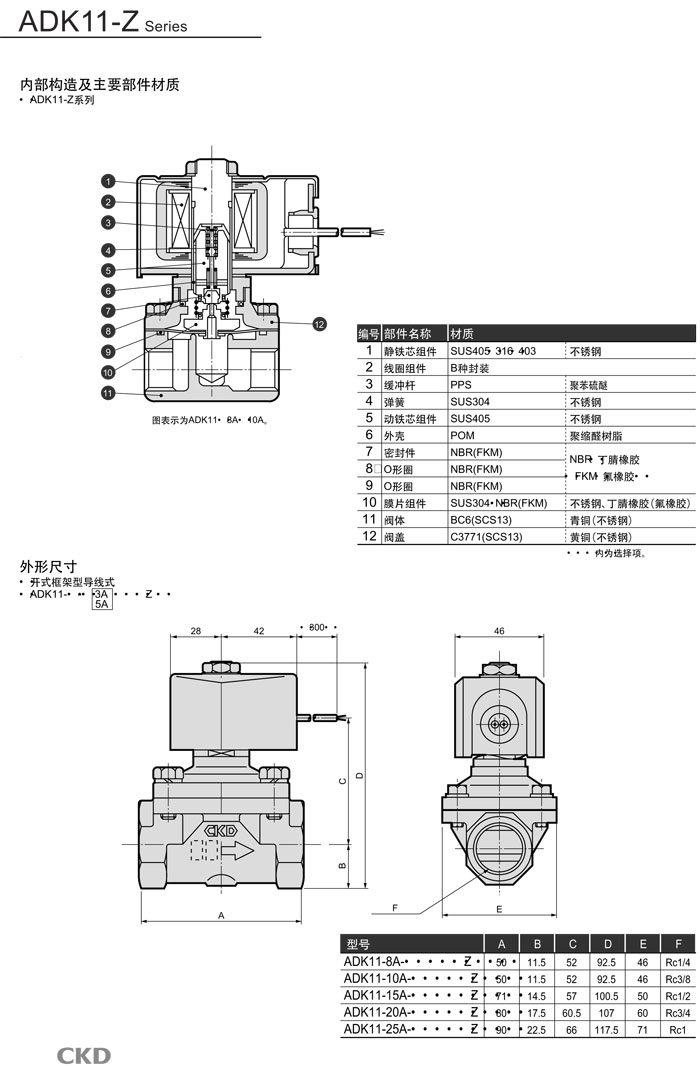 ADK11-8A,ADK11-10A,ADK11-15A,ADK11-20A,ADK11-25A,CKD先導式式2通電磁閥