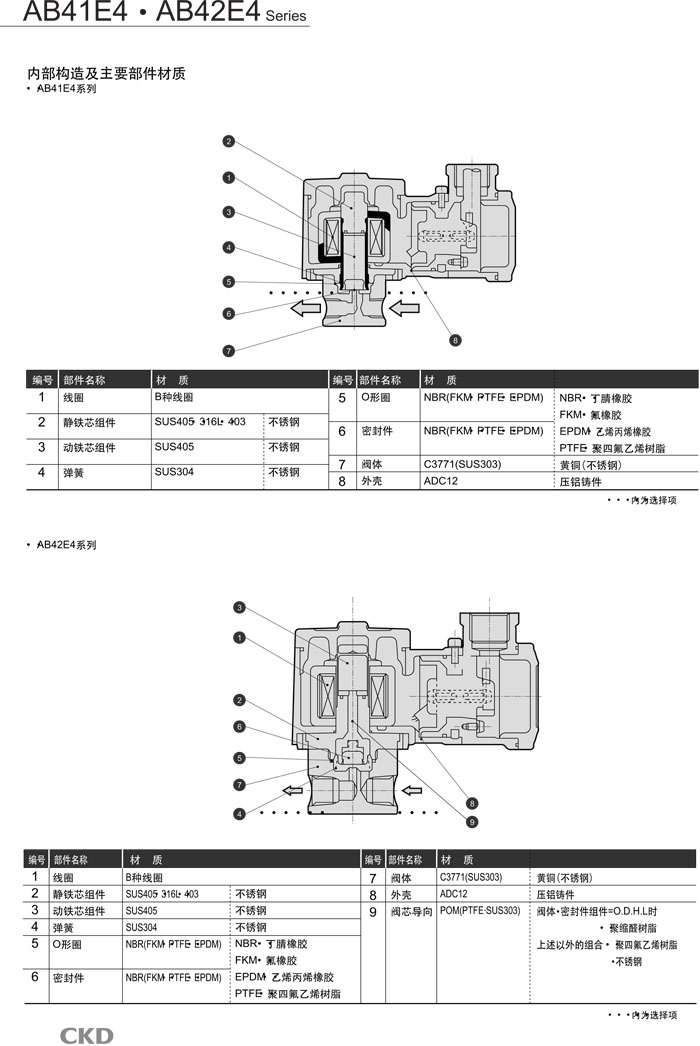 AB41E4-02-1,AB41E4-03-1,AB41E4-02-2,AB41E4-03-2,AB41E4-02-3,AB41E4-03-3,CKD直動(dòng)式2通電磁閥