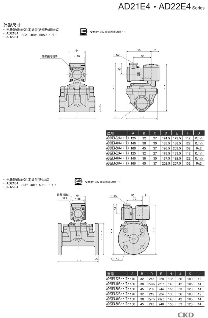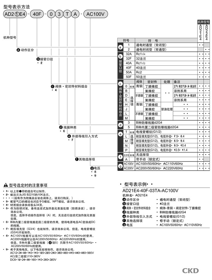 AD21E4-32A,AD21E4-32F,AD21E4-40A,AD21E4-40F,AD21E4-50A,AD21E4-50F,CKD先導式2通電磁閥