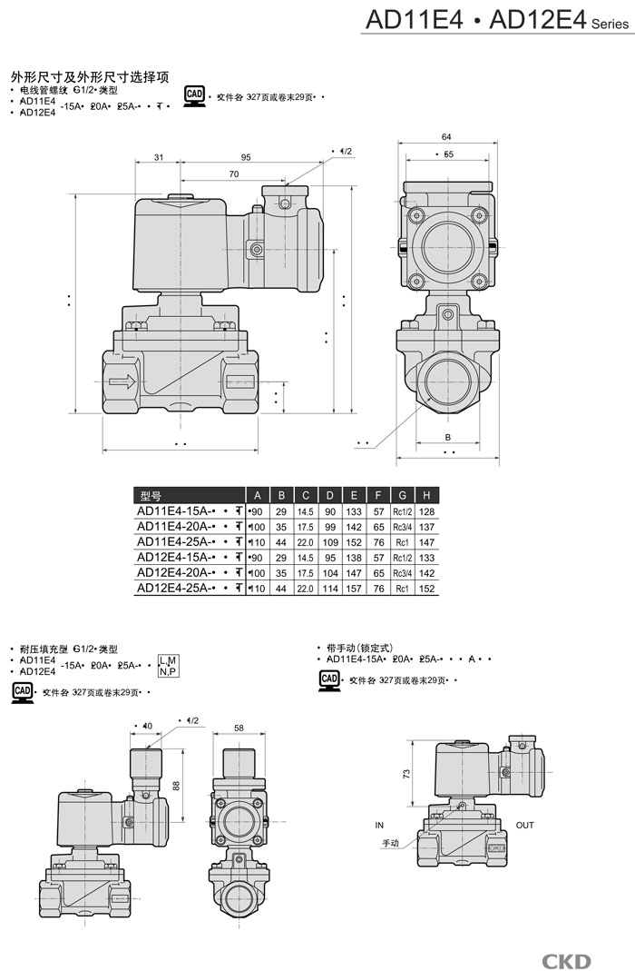 AD11E4-15A,AD11E4-20A,AD11E4-25A,AD12E4-15A,AD12E4-20A,AD12E4-25A,CKD先導式2通電磁閥