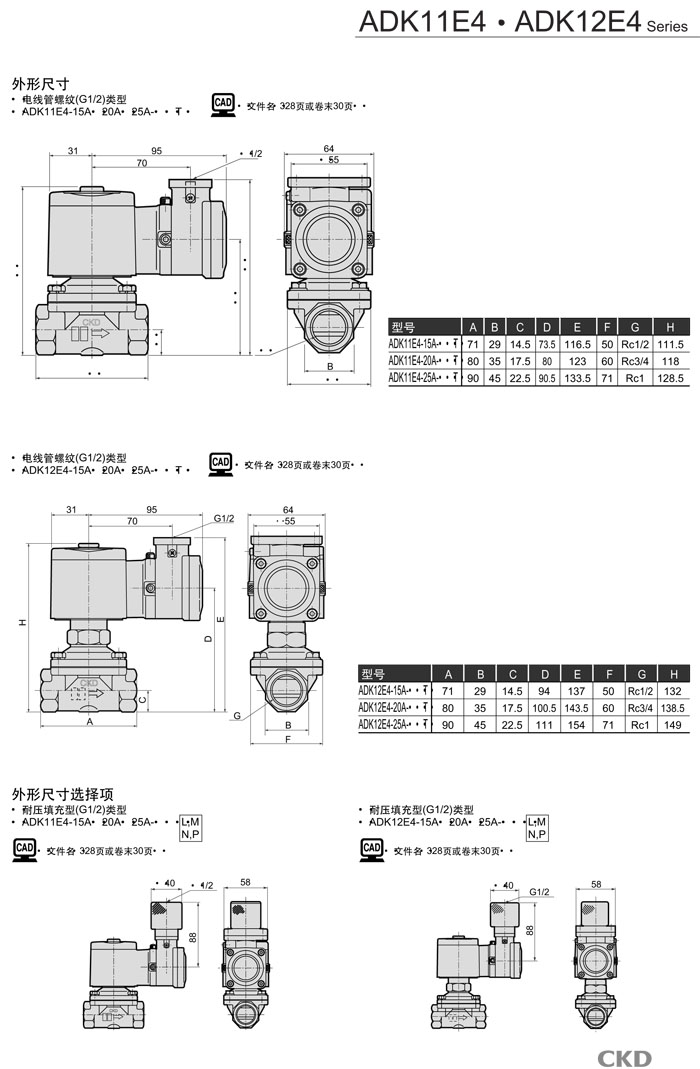 ADK11E4-15A,ADK11E4-20A,ADK11E4-25A,ADK12E4-15A,ADK12E4-20A,ADK12E4-25A,CKD先導式2通電磁閥