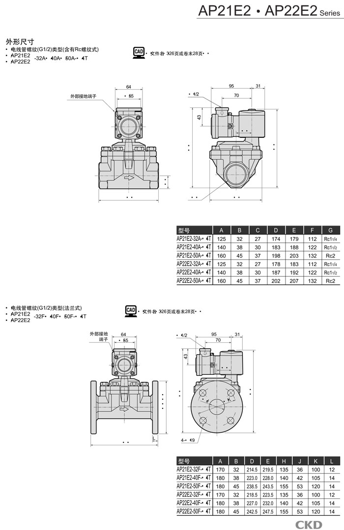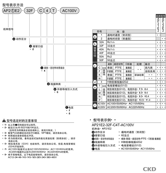 AP21E2-32,AP21E2-40,AP21E2-50,AP22E2-32,AP22E2-40,AP22E2-50,AP21E2-32A-K4N,CKD先導式2通電磁閥