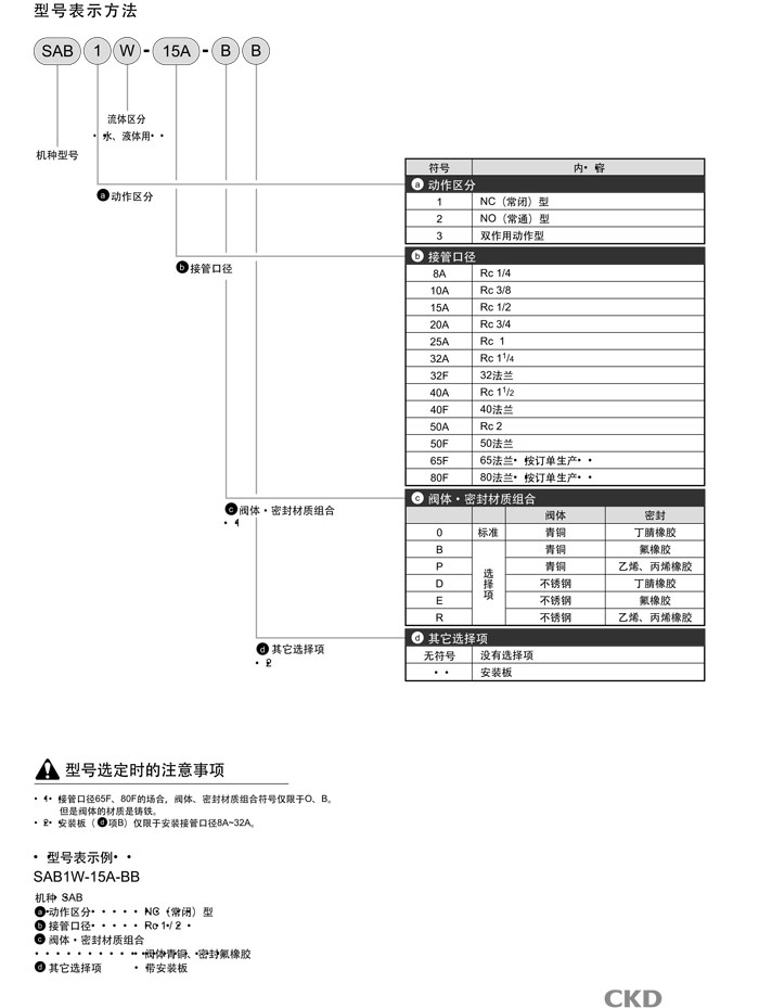 SAB1W-50,SAB2W-8,SAB2W-10,SAB2W-15,SAB2W-20,SAB2W-25,SAB2W-65,SAB2W-80,CKD氣控式2通閥
