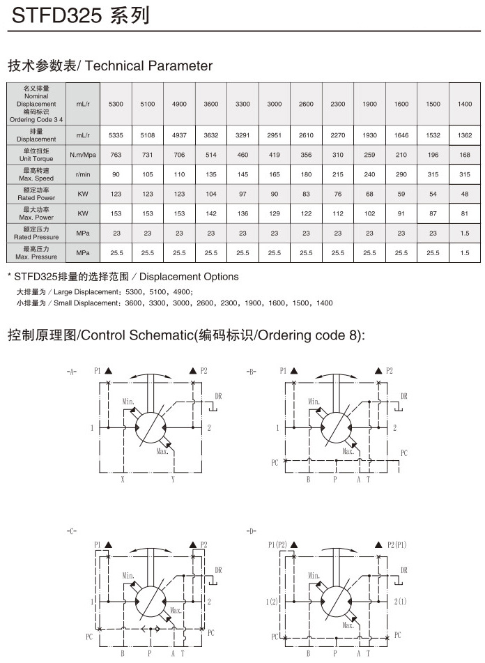 STFD系列液壓馬達具有雙排量功能,可以從較寬范圍的排量中選擇適合于特殊應用需求的排量??梢酝ㄟ^(guò)遠程控制或手動(dòng)切換安裝在馬達上的方向控制閥來(lái)實(shí)現排量的切換,并且可以在馬達運轉中簡(jiǎn)單和輕松的實(shí)現。其主要特點(diǎn)如下: