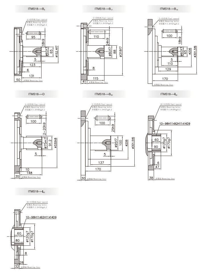 6、該系列馬達的安裝尺寸與ITM系列保持一致,是ITM系列馬達往高壓、高端發(fā)展一款重要產(chǎn)品。