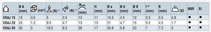 VSAJ系列通用吸盤(pán),波紋形1.5褶,Ø15 - 30mm,材料:丁腈橡膠(NBR),硅膠(SI)。