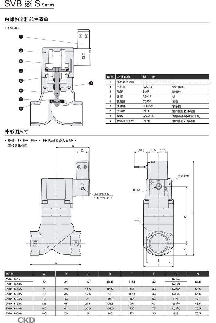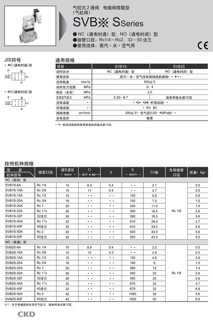 SVB1S-40A,SVB1S-40F,SVB1S-50A,SVB1S-50F,SVB2S-8A,SVB2S-10A,SVB2S-15A,SVB2S-20A,CKD氣控式2通閥