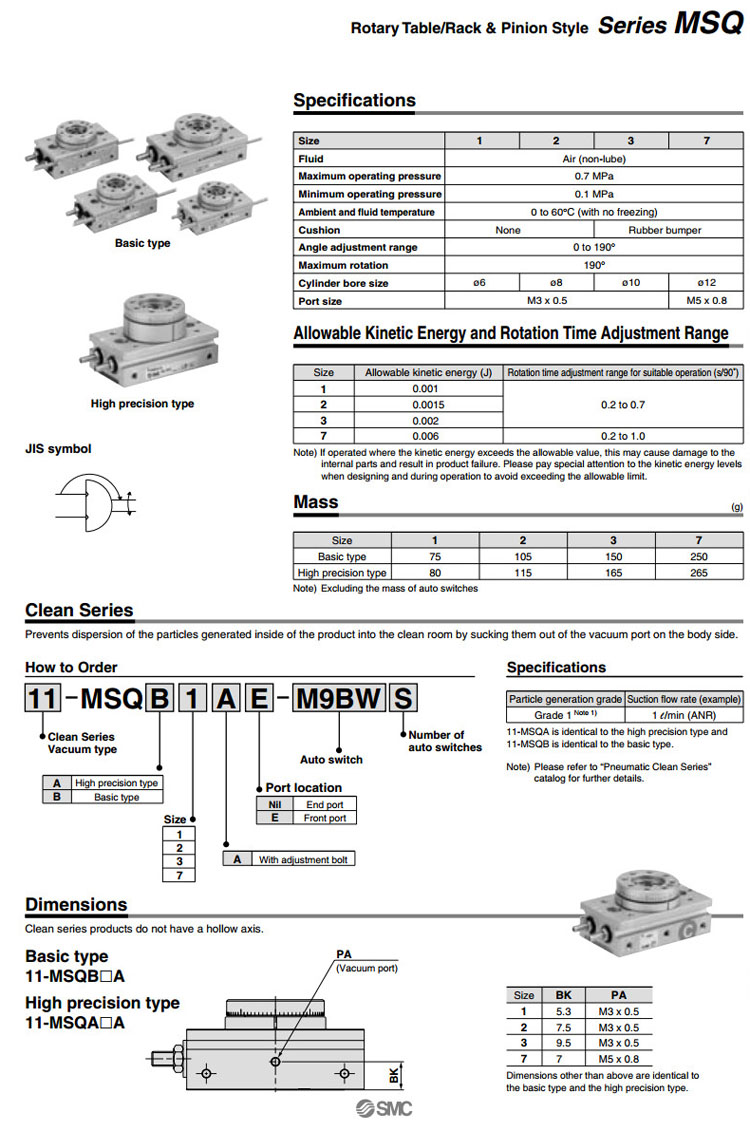 MSQA1A,MSQA2A,MSQA3A,MSQA7A,MSQB1A,MSQB2A,MSQB3A,MSQB7A,SMC擺臺氣缸