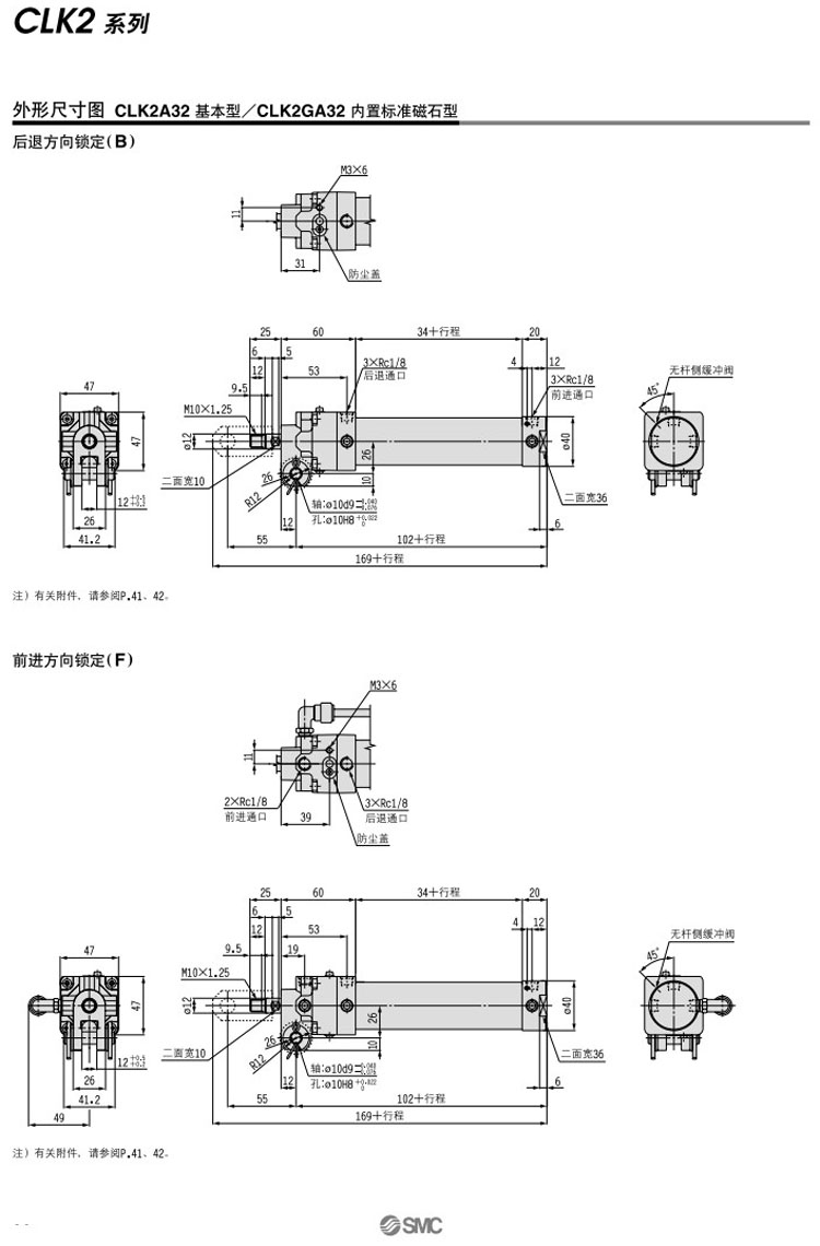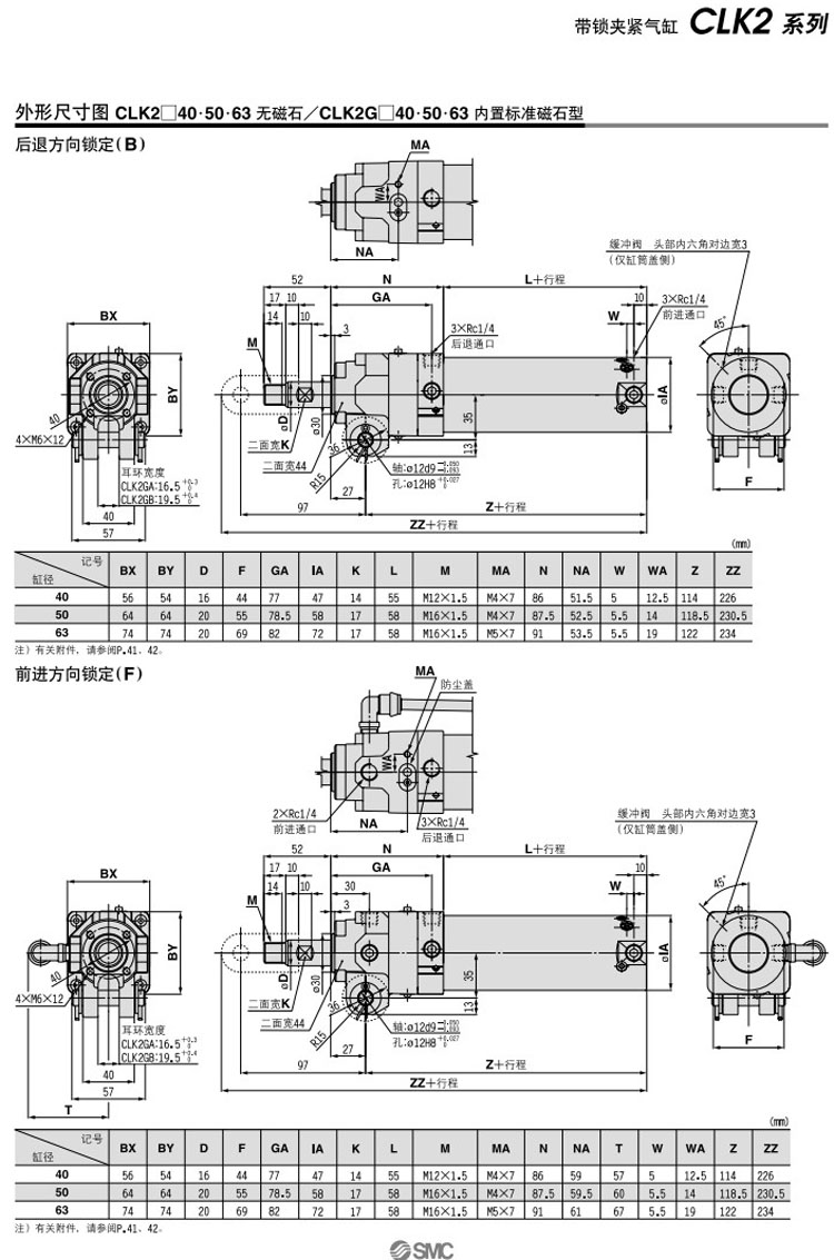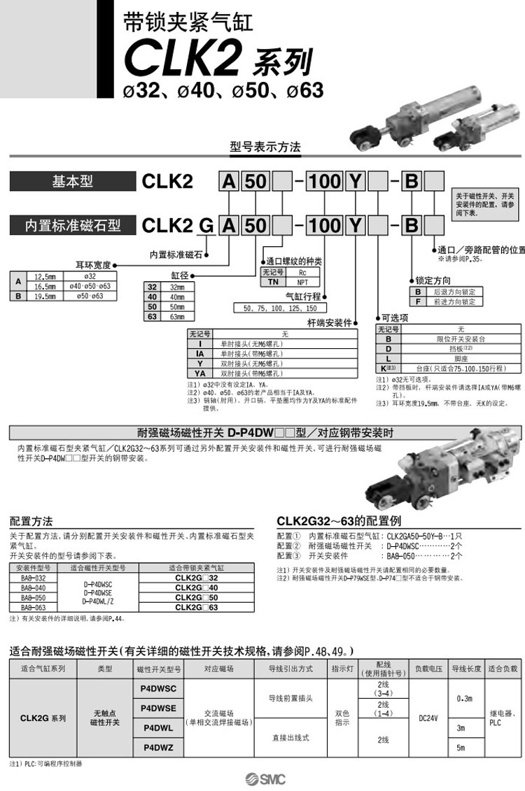 CLK2A32-50,CLK2A40-50,CLK2A50-50,CLK2A63-50,CLK2B32-50,CLK2B40-50,CLK2B50-50,CLK2B63-50,SMC帶鎖夾緊氣缸