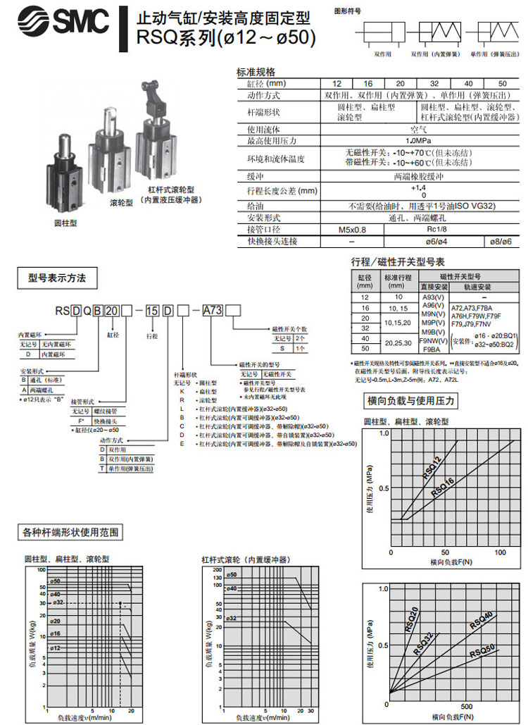 RSDQB12,RSDQB16,RSDQB20,RSDQB32,RSDQB40,RSDQB50,RSDQA12,RSDQA16,RSDQA20,RSDQA32,RSDQA40,RSDQA50,SMC止動(dòng)氣缸