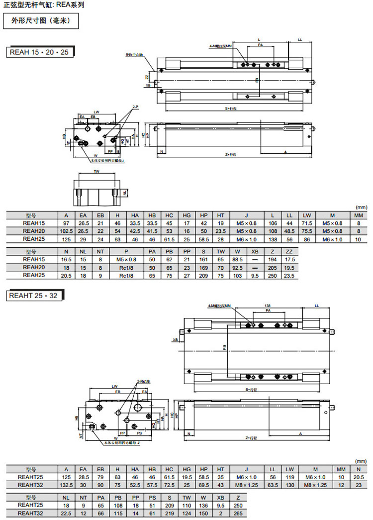 REBS10-150,REBS15-150,REBS20-200,REBS25-200,REBS32-200,REBS40-200,REBS10-200,SMC正弦無(wú)桿氣缸