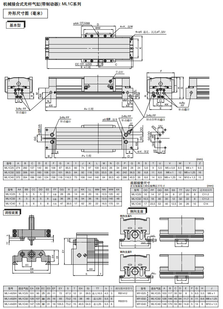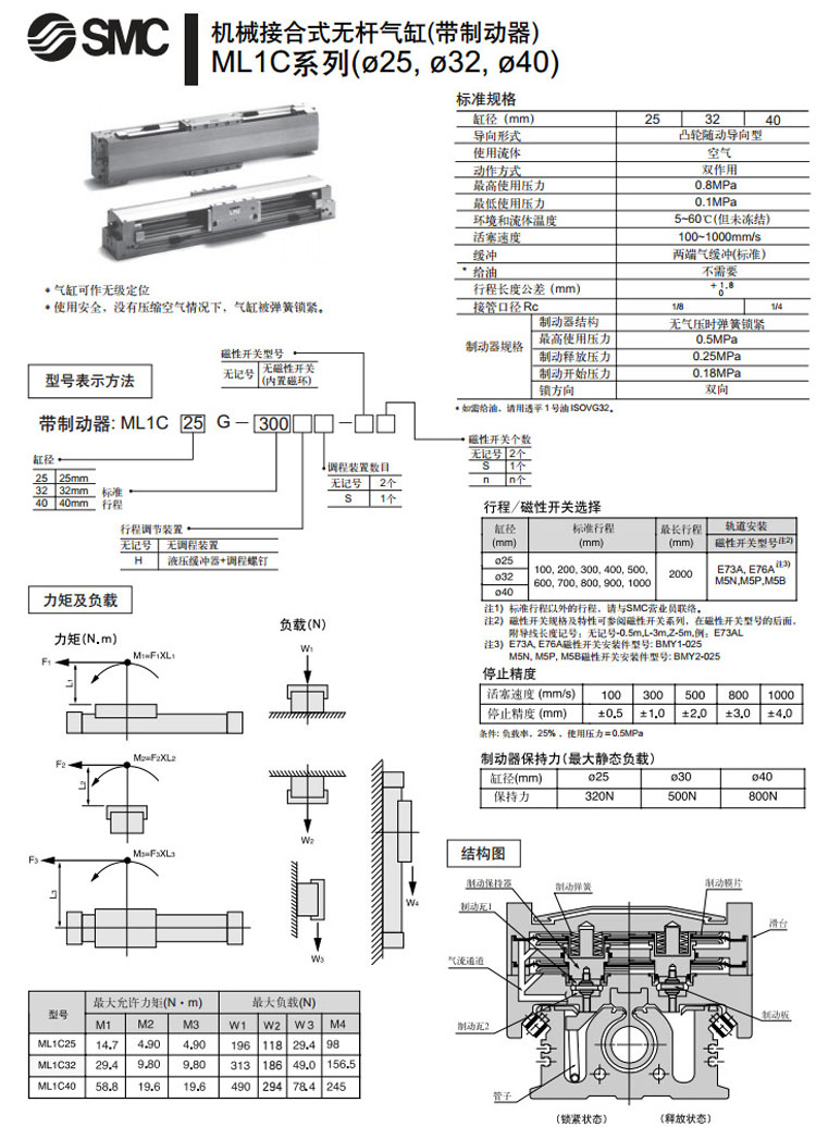 ML1C25G-100,ML1C32G-100,ML1C40G-100,ML1C25G-200,ML1C32G-200,ML1C40G-200,SMC無(wú)桿氣缸