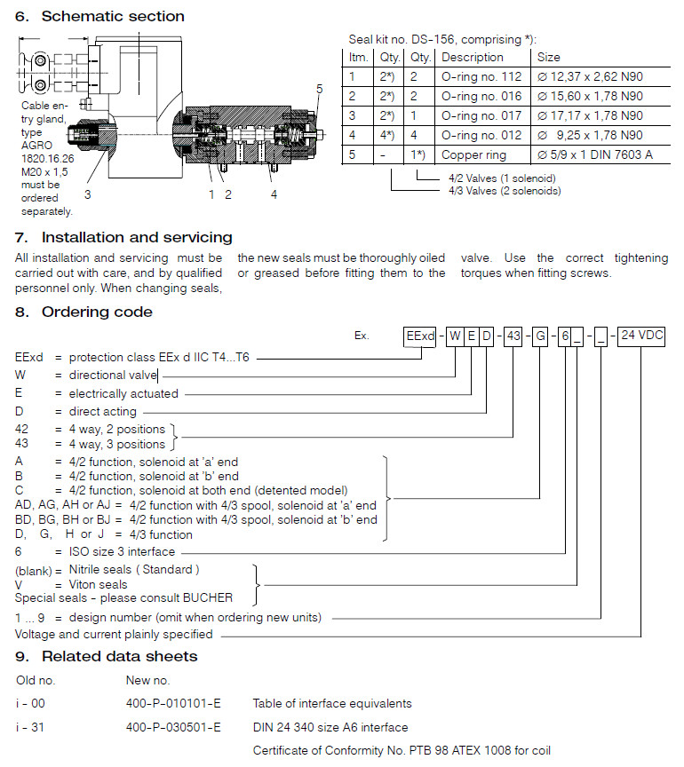 EExd-WED-42-A,EExd-WED-42-B,EExd-WED-43-A,EExd-WED-43-B,EExd-WED-42-C,Bucher方向閥