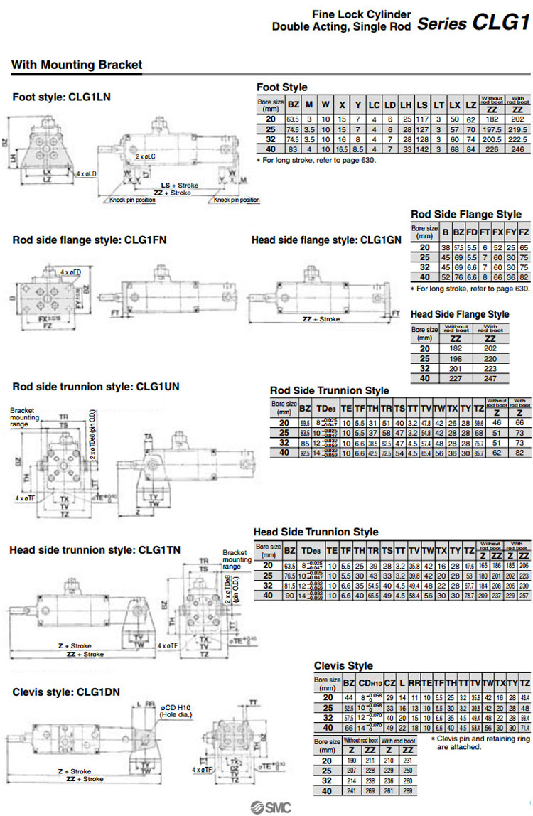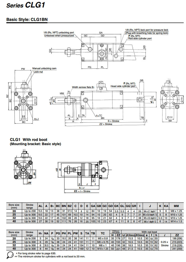 CLG1BA20-25,CLG1LA20-25,CLG1FA20-25,CLG1GA20-25,CLG1UA20-25,CLG1DA20-25,CLG1TA20-25,SMC精密鎖緊氣缸