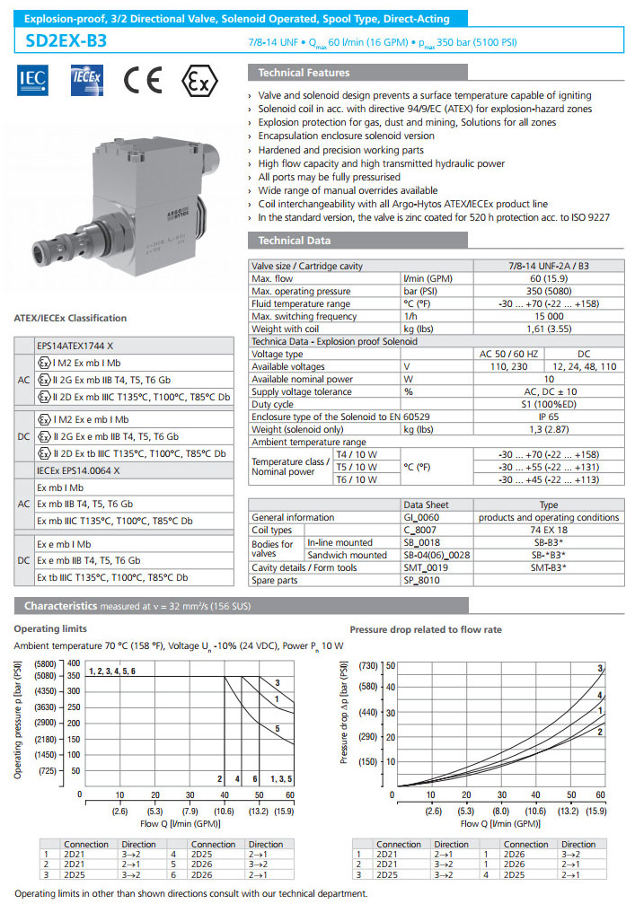 SD2EX-B3/H2D21,SD2EX-B3/H2D25,SD2EX-B3/H2D26,ARGO電磁換向閥