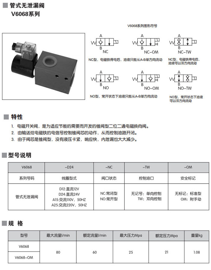 V6068-D12,V6068-D24,V6068-A15,V6068-A25,V6068-D12-NC-TW-OM,V6068-A25-NO,管式無(wú)泄漏閥