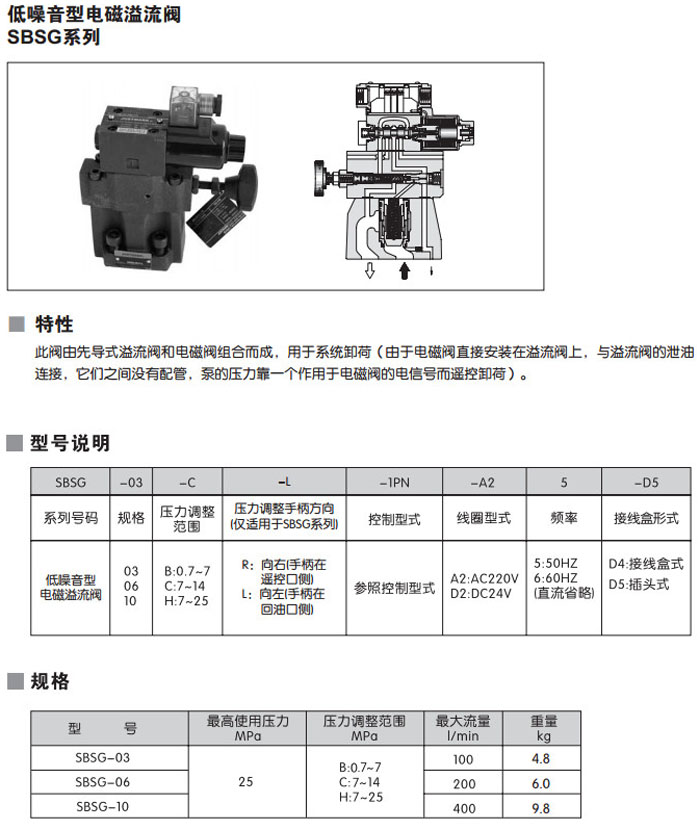 SBSG-03,SBSG-06,SBSG-10,SBSG-03-B-R-1PN-A2-5-D4,SBSG-06-B-R-1P-A2-6-D5,低噪音電磁溢流閥
