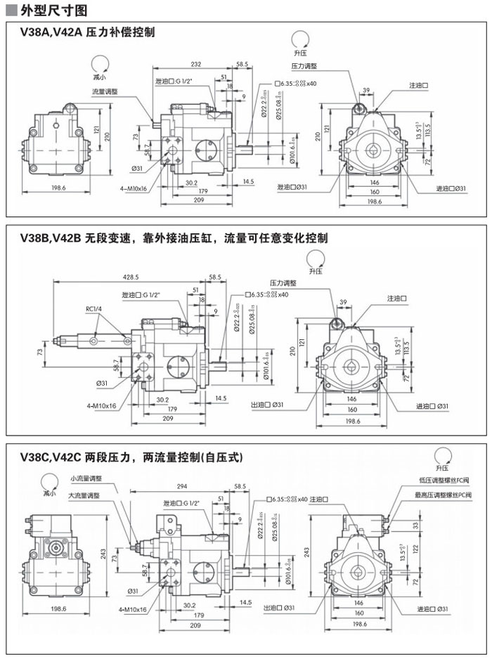V15,V18,V23,V25,V38,V42,V50,V70,V15A1RBS-A,V23A1RB-F,V50A1RB2-A,變量柱塞泵