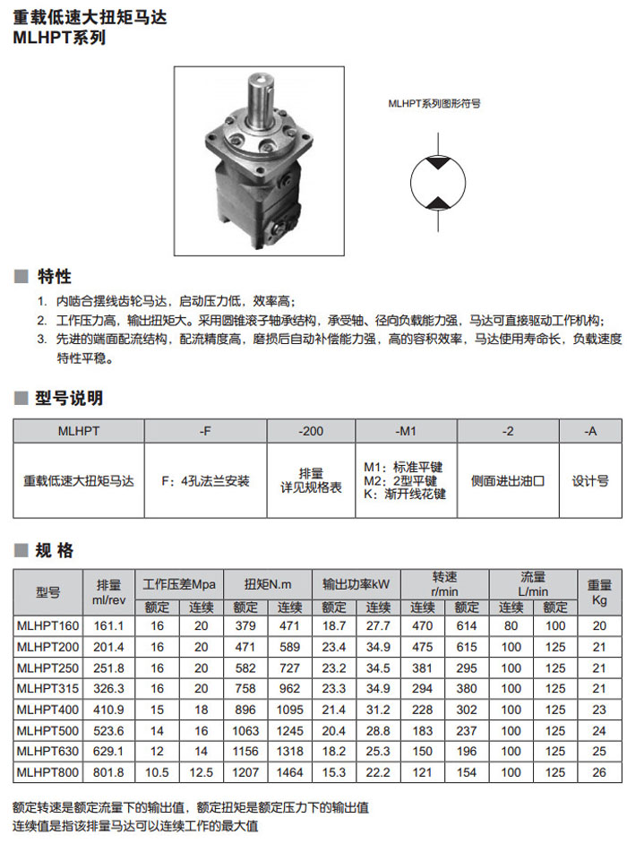 MLHPT-F-160,MLHPT-F-200,MLHPT-F-250,MLHPT-F-315,MLHPT-F-400,MLHPT-F-500,MLHPT-F-630,MLHPT-F-800,重載低速大扭矩馬達