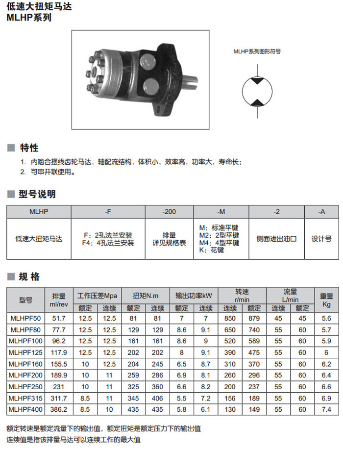 MLHP-F-50,MLHP-F-80,MLHP-F-100,MLHP-F-125,MLHP-F-160,MLHP-F-200,MLHP-F-250,MLHP-F-315,MLHP-F-400,低速大扭矩馬達