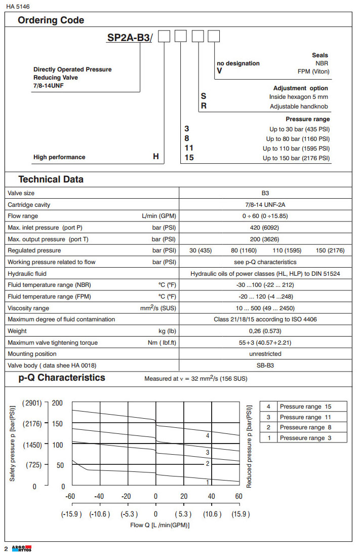 SP2A-B3/H3,SP2A-B3/H8,SP2A-B3/H11,SP2A-B3/H15,ARGO直動(dòng)式減壓閥
